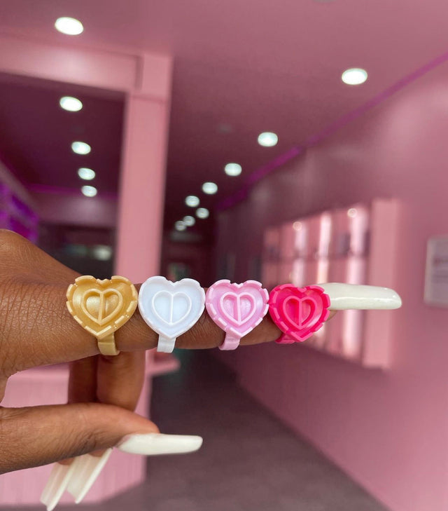 Discover our adorable heart-shaped glue rings designed for precision lash application. These volume glue rings create super thin bases, making your lash extensions flawless. Each pack contains 100 pieces in various colors, perfect for professional lash techs seeking efficiency and style. Elevate your lash game today!